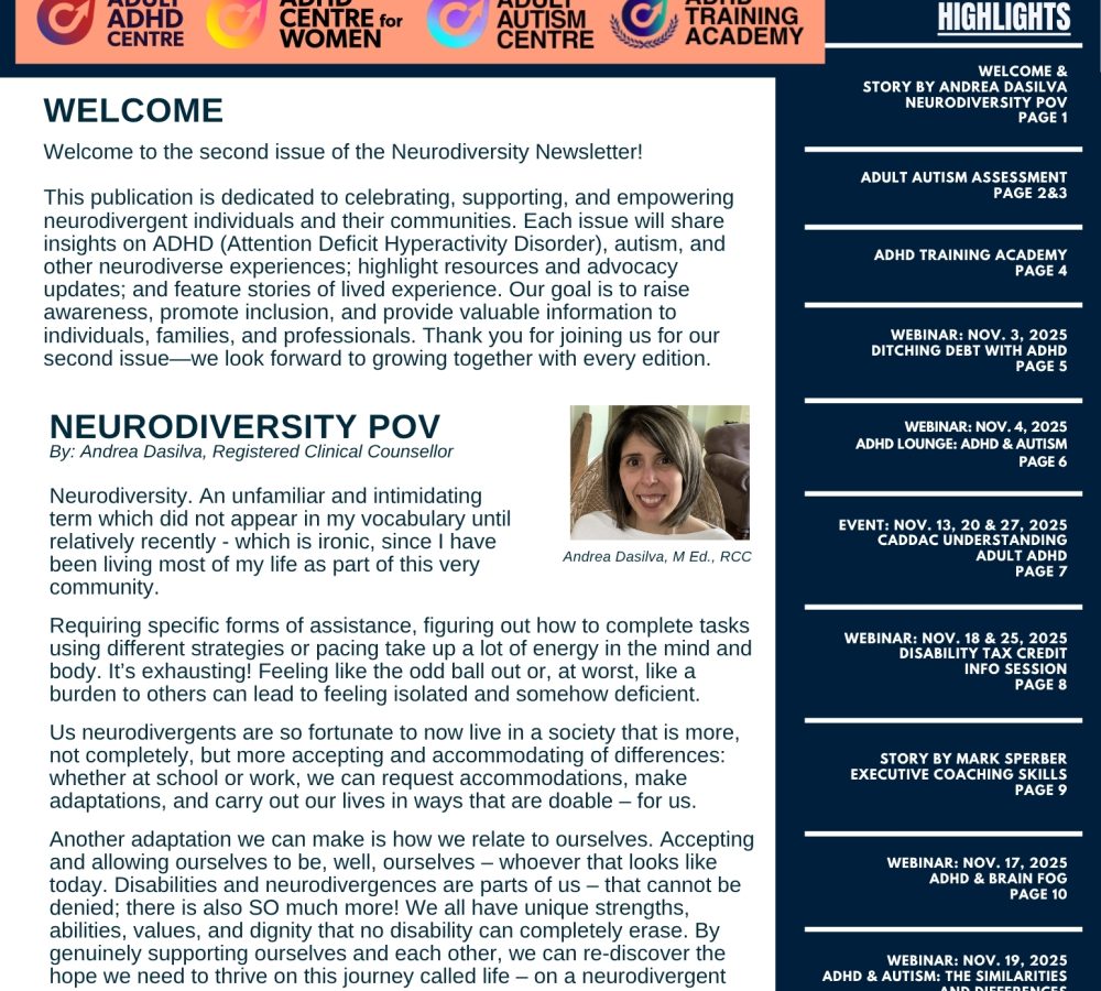 The November 2025 issue of Neurodiversity News is packed with impactful stories, resources, and events for the ADHD and autism communities, offering essential support and expert-led learning opportunities for neurodivergent adults and allies.